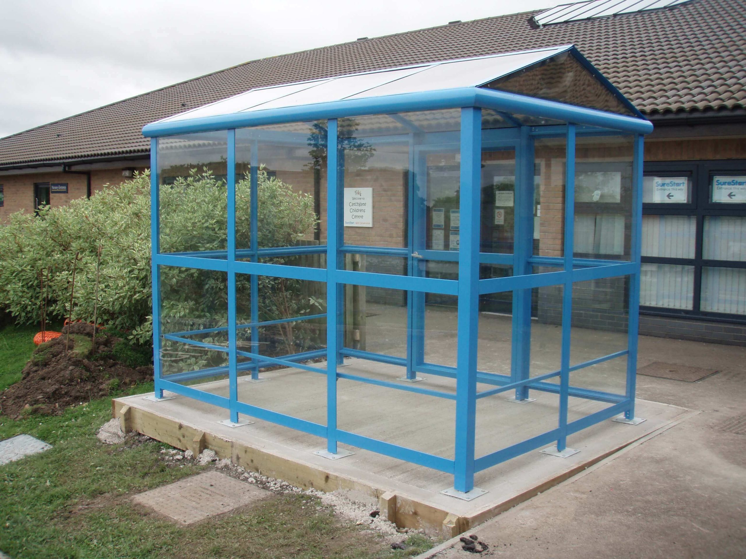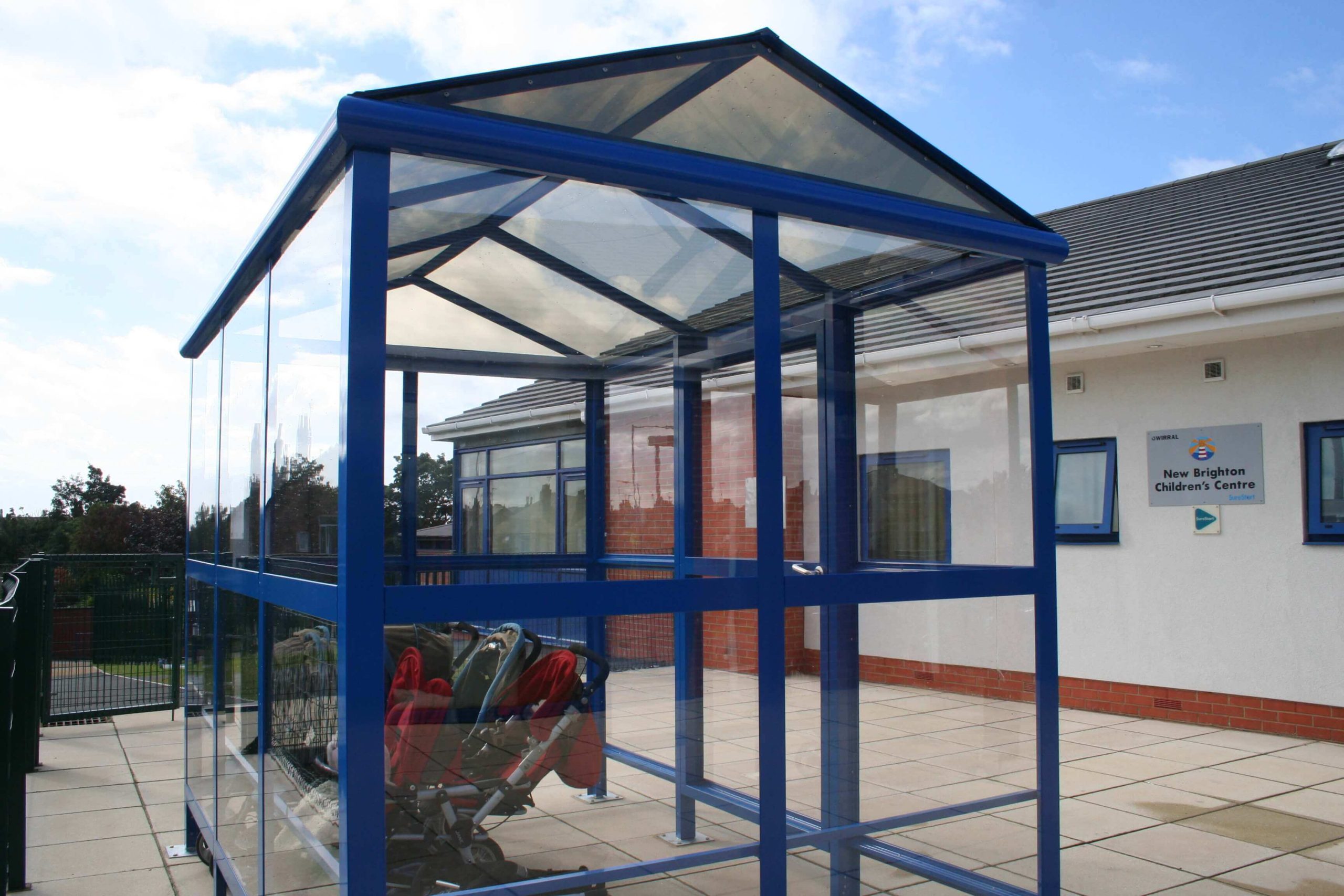 This 3m x 2m Secure Pram Shelter is made from Aluminium extrusion so it will never rust. It is glazed with 6mm toughened safety glass and polyester powder-coated to any RAL or BS colour of your choice.