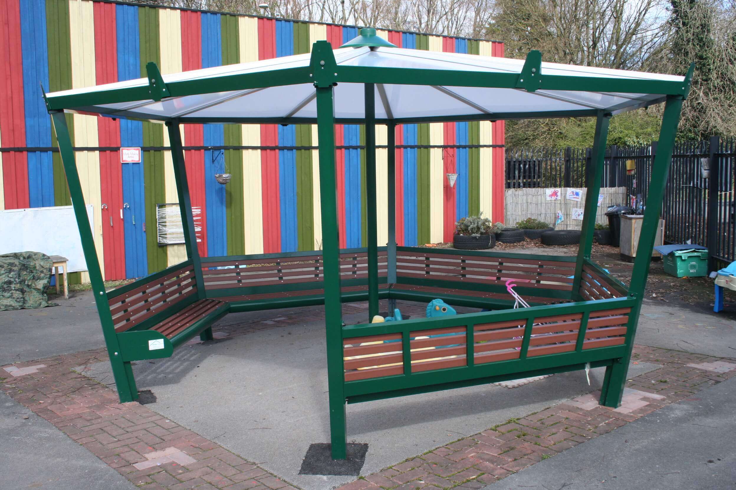 Explore the quality of our Maypole Shelter through our thumbnail photos, and see for yourself the excellent craftsmanship and design that goes into every piece. For schools, councils, and community spaces looking for a reliable, attractive, and long-lasting shelter solution, The Maypole Shelter is the perfect choice.