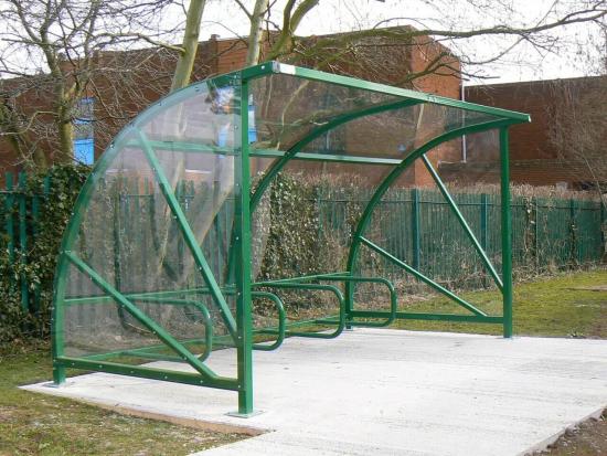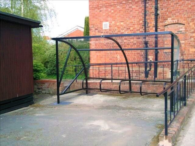 A more traditional cycle shelter we call Quadro comes with our fantastic integrated cycle hoops. We were the first to introduce this idea and while many companies have tried to copy, no-one has made them as good. By keeping the cycle racks off the ground the area stays cleaner and to anyone who has tried to clean out the traditional ‘Sheffield Toast Racks’ you’ll know what I mean.